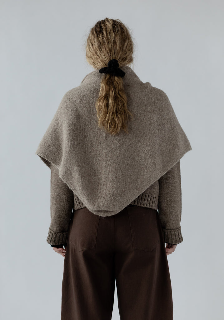 Bundle up in comfort with the felted shawl. A versatile large triangle shawl to wrap around your shoulders, over the head, or looped around your neck for a scarf.