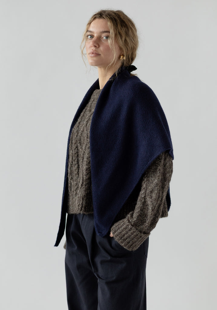 Bundle up in comfort with the felted shawl. A versatile large triangle shawl to wrap around your shoulders, over the head, or looped around your neck for a scarf.