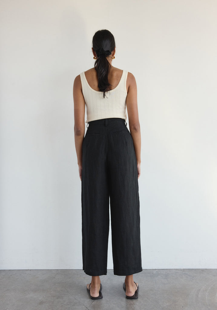 The Luca Trouser, our classic straight leg for everyday, cut from our favorite laundered linen. Designed with a high rise fit, front pleats, and a straight fit through the hips and legs with a full length. Finished with classic trouser details including welt pockets on the back seat and a zipper and button closure at the front.