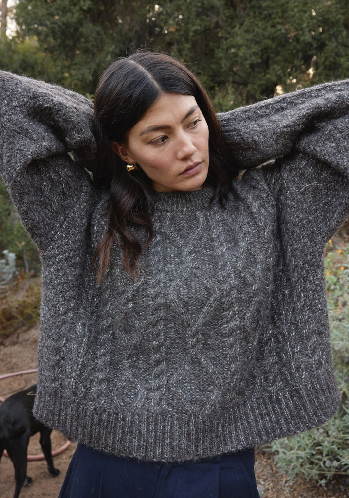 Our favorite lofty Alpa Cotton yarn is back this season and has been a First Rite customer favorite for a reason. The blend of cotton and alpaca creates insulation and volume with a surprisingly light overall weight and the undyed yarns create a beautiful and subtle melange that when knitted into the detail of our cable pullover it is perfection. Designed with a lightly oversized fit and extra long cuff to adjust to your perfect length.