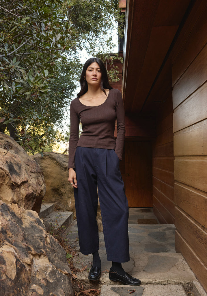 Our best seller is back in a new structured cotton twill for Fall. The Ana Crop is designed with front pleats and the perfect amount of volume through the hips and leg with a cropped fit. Closes with a zipper and hidden hook and bar closure at the center.
