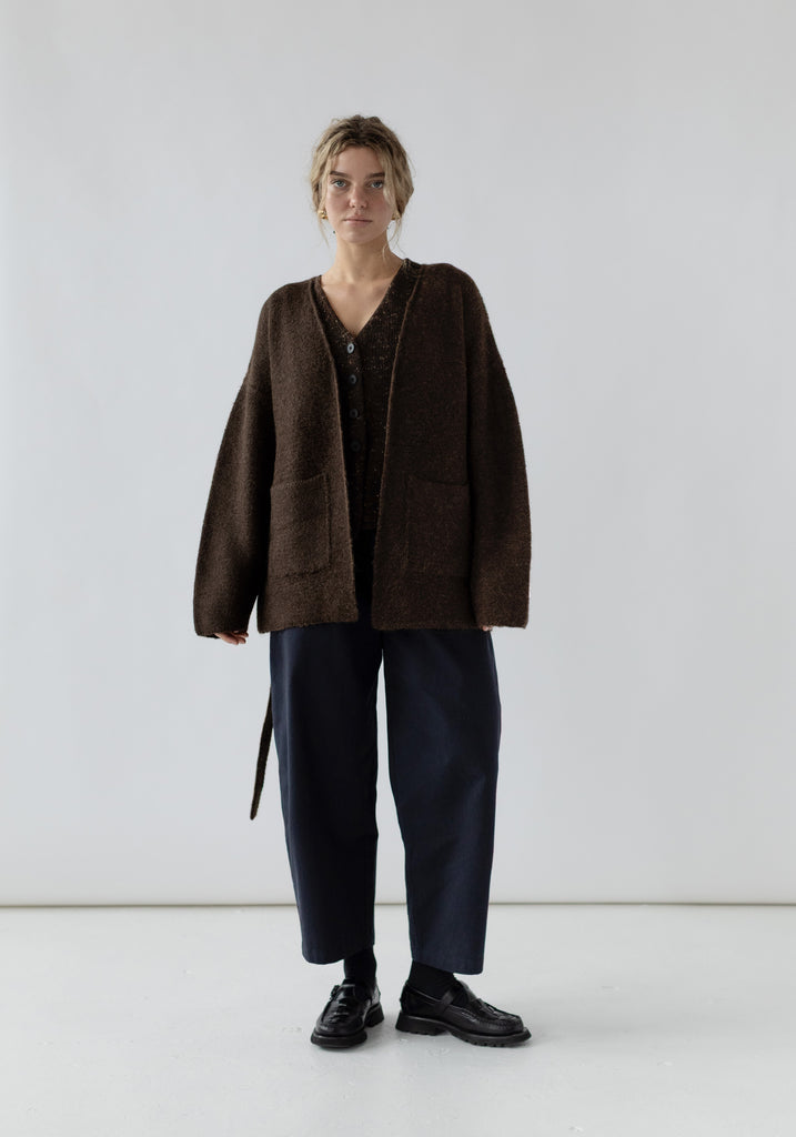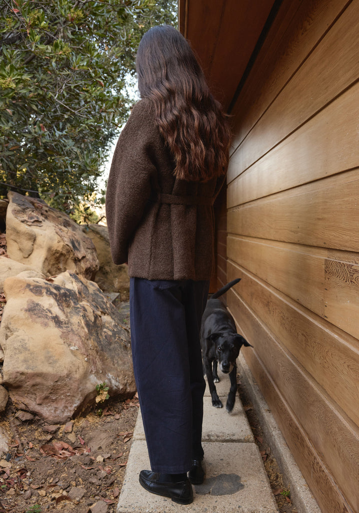 Our beloved sweater coat is back this season in last Fall's felted baby alpaca. Styled with two waist level pockets and a belt with loops to keep it closed. The hand felted technique adds a beautiful soft and fuzzy texture that feels both elevated and casual.