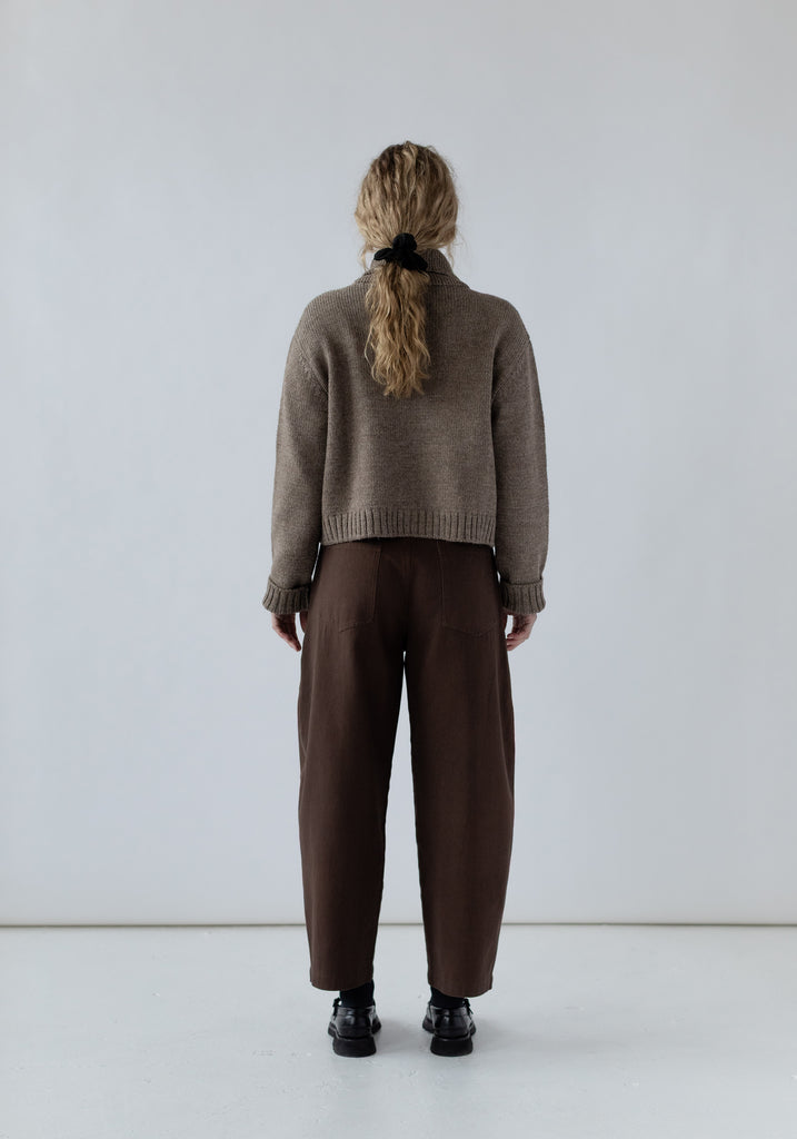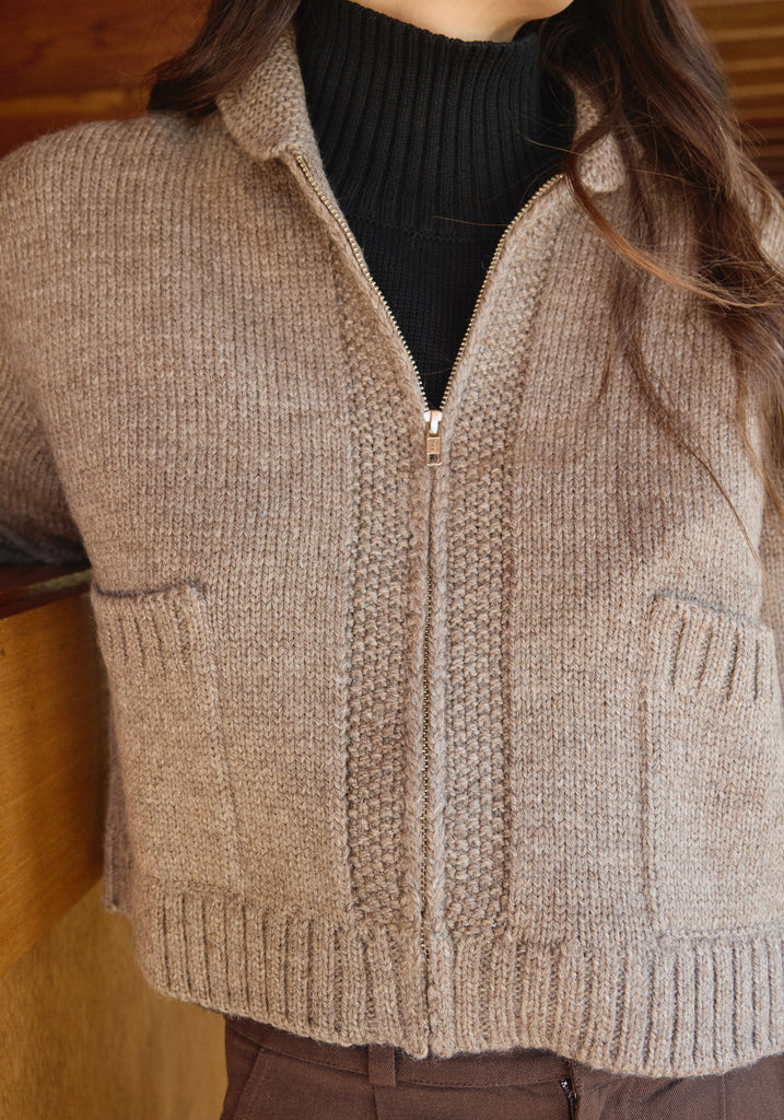 New to the highland wool collection, the Zip Up Cardigan. We love this yarn for the structure and sleekness it brings to our sweaters. The zip up cardigan is an easy everyday layer with just the right amount of detail. It opens down the front with a sturdy zipper and is knit with a contrast textured placket and collar and two front pockets.