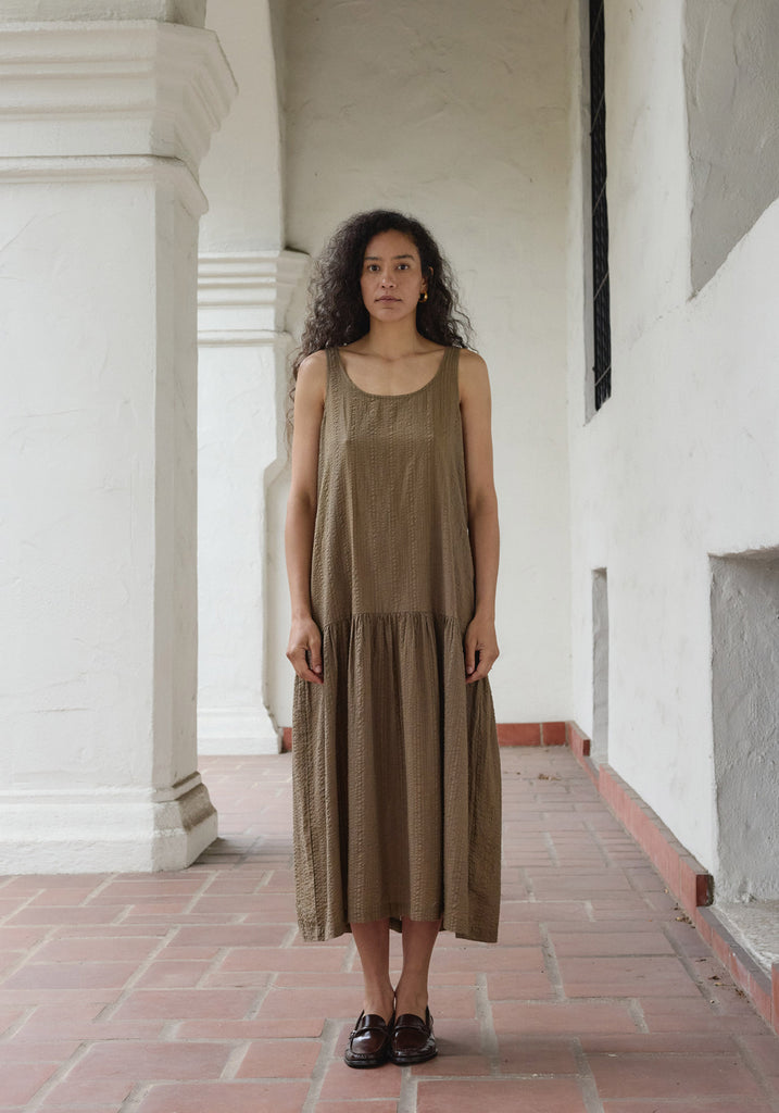 The Drop Waist Dress, an effortless addition to our Summer dress collection, cut this season from our lightweight textured cotton seersucker. Designed with a flattering oversized fit and drop waist with gathered skirt