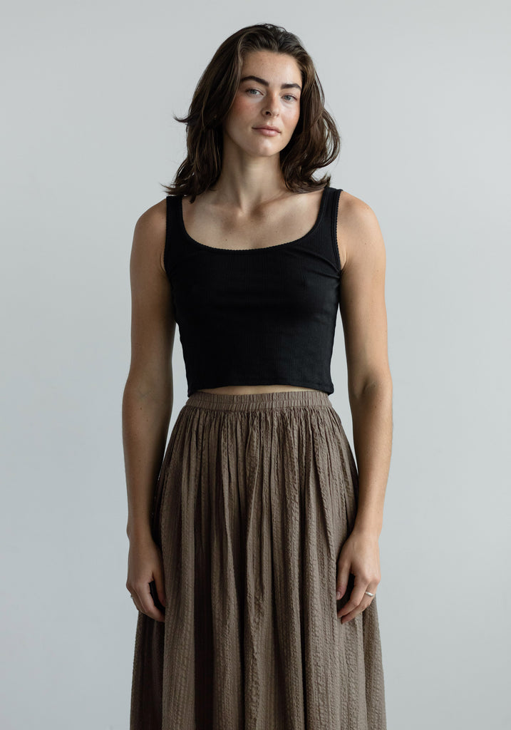 Introducing the softest organic cotton pointelle knitwear. An easy cropped tank to pair with all your favorite high rise bottoms all Summer long.