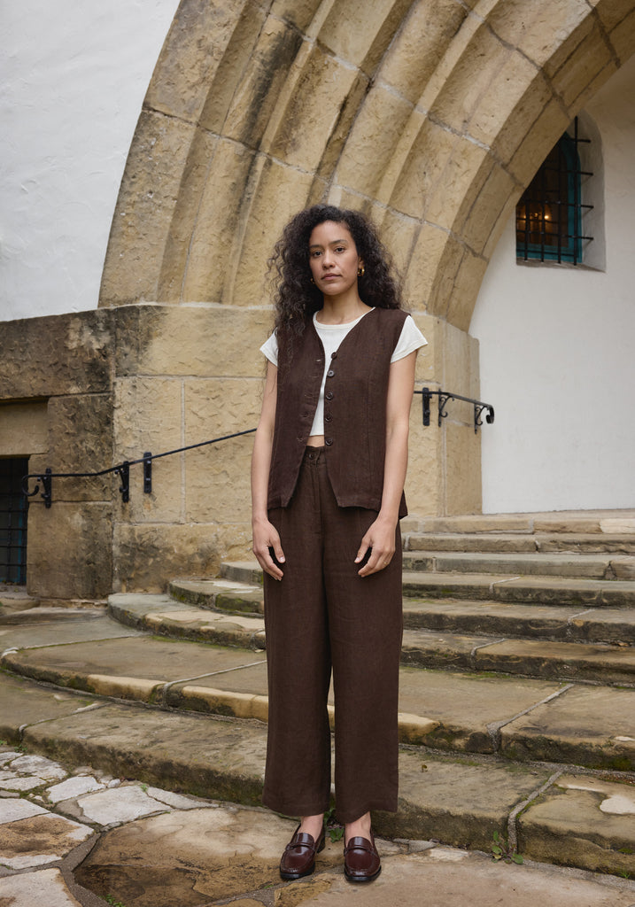 A versatile piece to mix and match with this season's linen bottoms for a perfect set. Wear it on its own or as a lightweight layer over your favorite tank or dress. Closes with tonal buttons down the center front and finished with a belt in back for an adjustable fit at the waist.